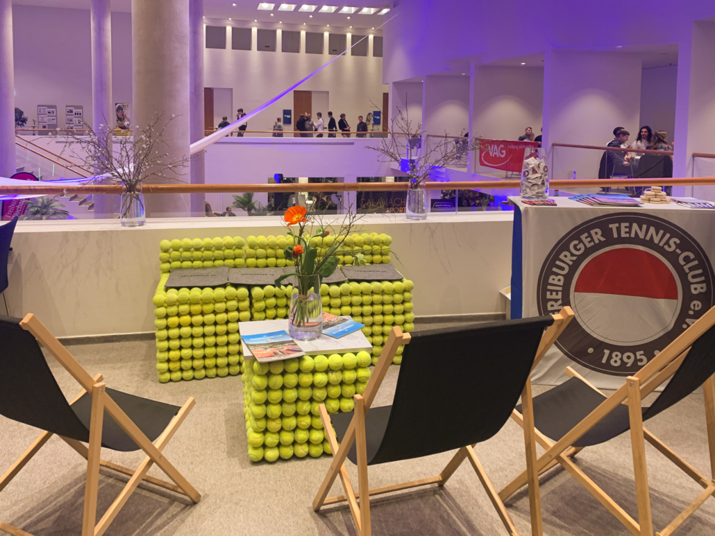 Der FTC präsentierte sich auf der diesjährigen Galanacht des Sports der Stadt Freiburg von seiner besten Seite. 80 Clubmitglieder machten sich innerhalb der mehr als 1100 Gäste lautstark bemerkbar, als Rotraut Sprieß mit einer Silbermedaille und Martin Bürkle mit einer Goldmedaille für ihre herausragenden Erfolge im Jahr 2023 geehrt wurden. Der Stand unseres Clubs war nicht nur sehr einladend und schön dekoriert, sondern wurde insbesondere dank des Aufschlagkäfigs zu einem magnetischen Anziehungspunkt für viele Besucher. Dort konnte man mit Können und etwas Glück in vier verschiedenen Teilnehmerklassen durch eine möglichst hohe Aufschlagsgeschwindigkeit schöne Preise gewinnen. Daneben wurden gut gelaunt zahlreiche anregende Gespräche geführt oder neue Kontakte geknüpft – es war ein sehr gelungener Abend.