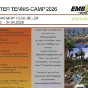 • Ort: Mega­s­a­ray Club Belek (www​.mega​s​a​ray​be​lek​.com), Ten­nis- und Urlaubs­pa­ra­dies an der tür­ki­schen Riviera